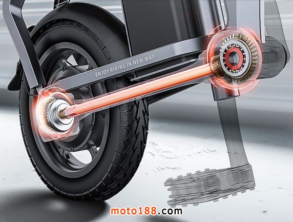 它最大的亮點在于它擺脫了傳動鏈的束縛,并采用了中軸傳動結構,從而降低了騎行過程中的阻力,節省了精力,并使騎行更加舒適。