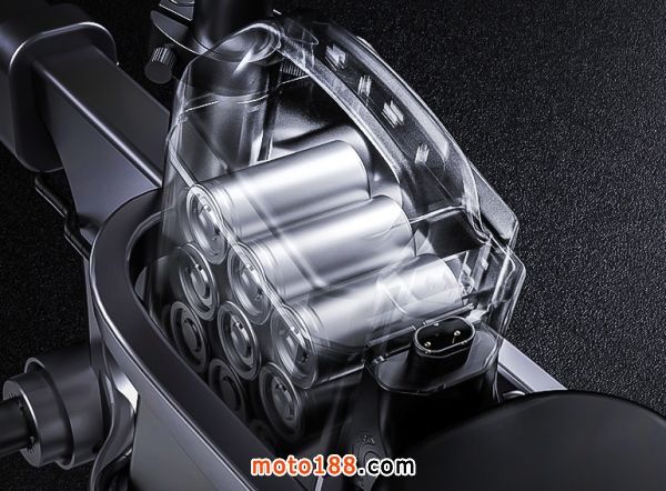 該車使用32650高性能汽車電芯。標準版配備48V20ah鋰電池,可支持200公里的續航里程和100公里的純電續航里程。電池采用內部插入式設計,非常方便拿取和放置。