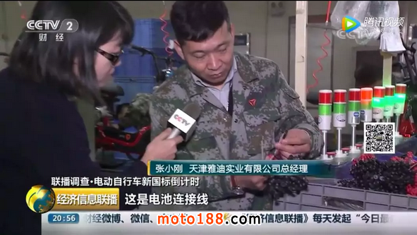 在央視報道中,天津雅迪實業有限公司總經理張小剛以電池連接線為例,對雅迪“新國標”的品質提升進行了說明。他表示,原來的電池連接線未使用阻燃材料,也比較細,有易燃的風險;而新的電池連接線全部采用阻燃材料,并安裝安全插件,安全性能得到了很大的提高。