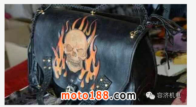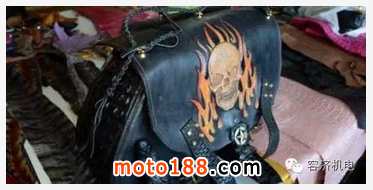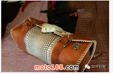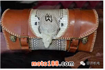 手工定制機車車頭包,整個包都是純皮手工縫制,亮點就是包中間纏繞的整條蛇皮,帶蛇頭,這個蛇頭在這個包上顯得立體性十足,這個包要是掛在車頭上一定很拉風。