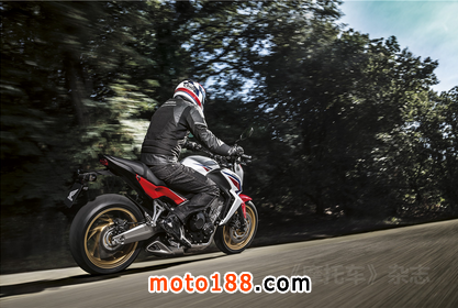 就絕對數值而言,這并沒有什么出色之處,但本田聲稱,CB650F把動力重點落在中低轉速,這是公路行駛時最常用的轉速區間。與上一代“大黃蜂”相比,新的并列四缸起步勁頭比較足,特別是在4000r/min以下進步明顯;中段轉速時油門響應出色,這在公路和街道的日常駕駛中,顯得很實用。隨著轉速的拉高,并列四缸運轉也很流暢,第六擋的極速可以跑過200km/h,足以滿足正常駕駛之需。