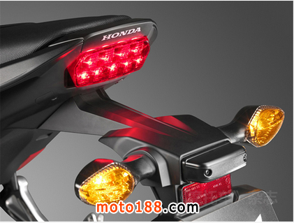 作為最新一代的“大黃蜂”,CB650F的造型青春動感、活力四射。頭燈內縮,頭部略略低沉,緊鄰著油箱,尾部則吊得比較高,營造出強烈的質量前移感覺,如同獵豹準備發力撲擊前微微下蹲,顯得張力十足。簡潔干練的4-2-1排氣系統,增強了鮮明犀利的個性。尾部的大型LED尾燈高高翹起,顯得新潮時尚。相信,這臺全新亮相的CB650F,將憑借新潮造型、實用動力、易于駕駛、乘騎舒適以及較高的性價比,贏得新的一批“大黃蜂”騎手。