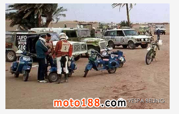 那你就大錯特錯了。在1980年的達喀爾賽場上,有這樣一群“瘋子”,騎著踏板摩托Vespa沖向了達喀爾的沙漠。