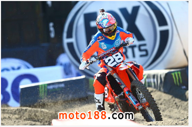 450cc級別中除了有代表KTM車隊(duì)四度參戰(zhàn)的Ryan Dungey(5號瑞恩鄧基),還有新秀Dean Wilson(15號)。250ccSX級別前半站西區(qū)有新人Justin Hill(32號),后半站東區(qū)有驍將Marvin Musquin(25號)。