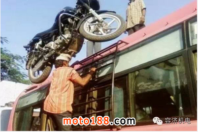 沒(méi)有任何的支撐,就這樣用頭頂著,雙手扶著階梯慢慢的上去,大家都知道摩托車的重量,不服的騎士可以自己試驗(yàn)!