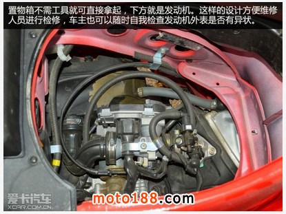 另外,Vespa車系有個特點,就是坐墊下的置物箱不需要任何工具就可直接拿起,在ET4上就可看到這項設計,后來推出的GT200也采用這樣的設計。在Piaggio集團中,也只有Vespa品牌的車款才有這樣的設計。