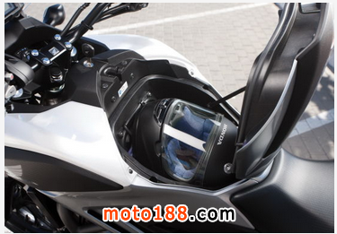 該車型的售價僅為7800美金,可以預料的這輛車是一輛相當簡單的車,在車本身的配置上并沒有太多可以聊的,一切基本的你需要的東西都在,任何奢華的東西都不在。唯一一個比較有特點的設(shè)計是該車的油箱被集成到了車的后部,加油需要打開乘客的座位(14升的油箱,百公里3.6個油,滿油續(xù)航380千米)。取油箱而代之的是一個巨大的儲物空間,大到可以放下一個XXL大小的頭盔。這種設(shè)定相當?shù)姆削{魚對NC700X城市代步車的定位,邊箱在如此巨大的,并且完美融合到車身設(shè)計中去了的儲物空間面前變得不再必要。