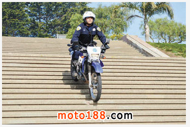 核心提示: 馮英威的畢業典禮就是騎著摩托警車,爬上爬下該100級階梯,挑戰性很高,極具危險性。摩托警車隊14日畢業禮僅華警馮英威(前排