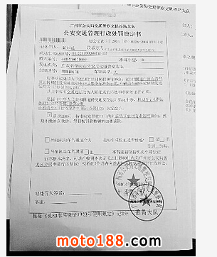 同年,中山車友哮天犬(網(wǎng)名)起訴中山坦洲交警非法扣車。經(jīng)過5個月,三次調(diào)解后,中山交警最終出具外地摩托車證照齊全不得扣車的通告,并且賠償經(jīng)濟損失918元。