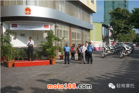 新華網科倫坡1月20日電:中國政府援助馬爾代夫的150輛警用摩托車20日在中國駐馬爾代夫大使館舉行移交儀式,中國駐馬爾代夫大使王福康和馬外交部無任所大使哈米德、警長瓦希德等出席。