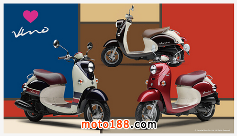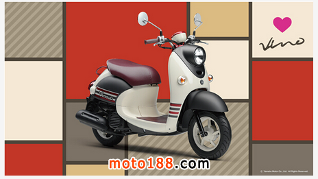 下圖的 XC50D Vino,工廠編號JBH-SA37J/A313E,沿用一副水冷四沖程單汽缸、OHC 三汽閥的發動機,電子燃油噴注系統,最大動力輸出 3.1 kw(4.2匹)。與現有銷售中的版本相比,新車最大的變化是車身顏色。新的 Vino 采用了兩個車身圖案的命名方式:男性色彩的稱之為 Vino Boy,圖案有兩個;女性色彩的稱之為 Vino Girl,圖案則多達五個。廠方同時稱,為了能夠充分滿足現代女性對時尚的追求,這部新的 Vino 還采用了女性的設計團隊負責開發。新的 Vino 預計在下月的14 號開始供應本土市場,公布的當地含稅零售價為 20.412 萬日元(折合人民幣約為 1.08 萬元),廠方的年度銷售計劃約為 1.1 萬部。
