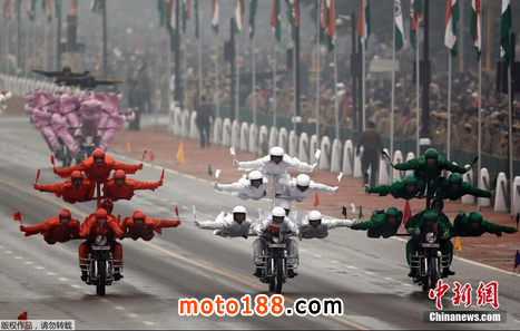 印度閱兵一幕:一輛摩托七個人