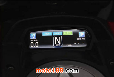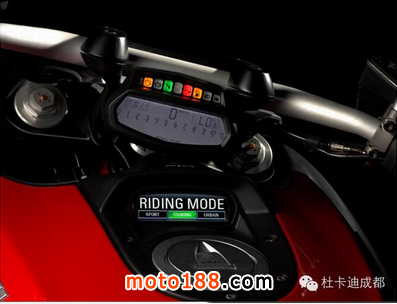 Diavel專屬的雙顯示屏,LED顯示(上)和TFT彩屏(下)。LCD表板顯示數據相當之豐富,除了一般常見的行車資料外,還有DTC介入警示燈、ABS系統狀態,油壓和后備燃油燈,讓您在騎行過程中只一瞥,就全部囊括其中。TFT彩屏讓騎士在騎行中除了速度和轉速外可以最直觀的了解到當前騎行中的波段、空氣溫度、電壓、兩段里程計、剩余燃油航距、平均及實況油耗數據、速度、ABS、DTC,旅程時間和下次檢修時間等各項數據。這上、下兩屏可謂是麻雀雖小五臟俱全。