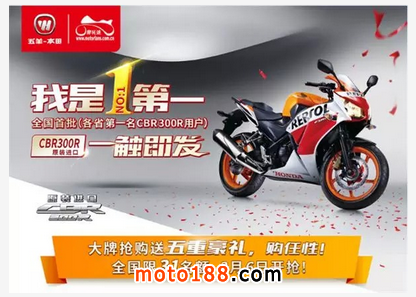 CBR300R大牌風(fēng)范,你值得擁有!“我是第一”CBR300R全國首批用戶預(yù)售搶購活動還有三天,趕緊行動吧!