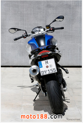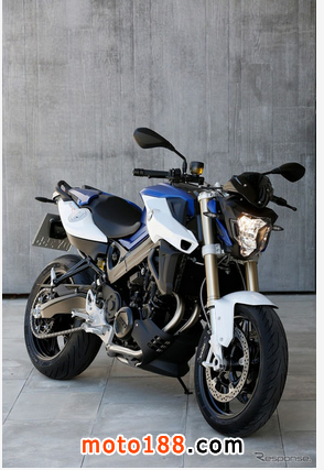 BMW發表全新改款F800R配置并雙缸798CC水冷引擎,出力90ps/8000rpm,前倒叉,鏈條在右側,排氣尾管及后碟盤在左側,異于一般擺放位置之設計?