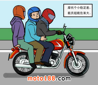 摩托車載人載物加劇了車輛的不穩(wěn)定性,給交通安全帶來隱患。法律規(guī)定摩托車要按照行駛證上的核定載人數(shù)載人,且在高速公路上行駛時(shí)摩托車不得載人,不得運(yùn)載超過規(guī)定高度的物品,不得在車把上懸掛物品。