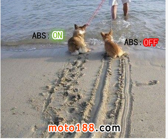 右邊的汪星人顯然已抱死,而左邊的汪星人開啟了ABS制動(dòng)系統(tǒng),制動(dòng)距離加上,點(diǎn)剎、安全。