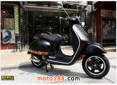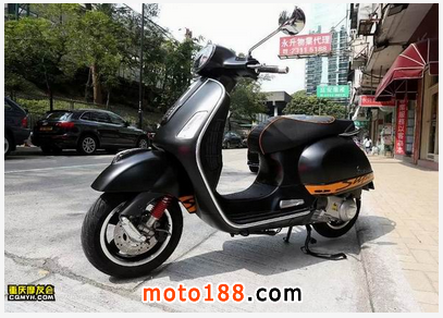 GTS 300 Super Sport是Vespa之中的跑車,除了是Vespa四沖程水冷機器鐵殼綿羊最大排氣量之外,還配有象徵高性能的裝飾:例如車頭有Vespa S大字凸章,還有紅色頭擔避震彈簧,具預載調較功能的雙筒尾避震,合金輪圈是銀圈黑柱 two-tone 款式。此外,頭尾碟剎,車頭柜桶位置還有SuperSport凸章。