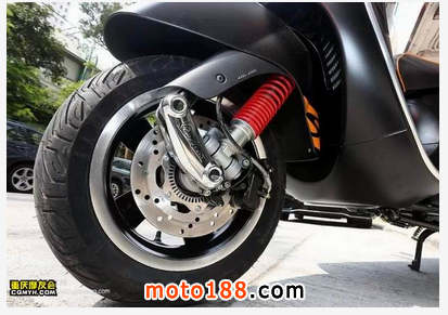 新的ESS頭避震設計來自Primavera。頭避震雖然是單擔設計,但其實細節經過修改,用意是減低避震芯滑動的阻力。支撐油壓芯的零件改用鋁合金制造,并以鉸鏈鞘針連接頭輪。這設計比起以前用兩顆鏍絲固定在頭輪,阻力更少,也更舒適。在車身傾斜時,抗扭表現更佳。據外國用家表示,新頭擔設計放在GTS 300 SS身上,比起車身較輕巧的Primavera有更明顯的得益,令到操控變得更穩定。