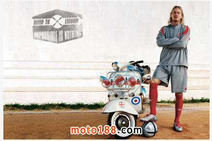 此外,VESPA在好萊塢的大小電影中絕不乏身影,無論是《天才瑞普利》、《本杰明·巴頓奇事》、《致命譯電》還是《羅馬假日》,它均示人以自由瀟灑的形 象。港人歐陽應霽也曾專文講述VESPA,一番贊美后也不忘結尾處自嘲:“根本沒有任何駕駛執照的我,所謂愛車也光是經過汽車陳列師的櫥窗目瞪口呆地 看。”英國老牌時裝設計師Paul Smith甚至還三番兩次地為VESPA “換新裝”。而運動品牌Adidas也曾以VESPA為靈感,多次創作了新鞋款。
