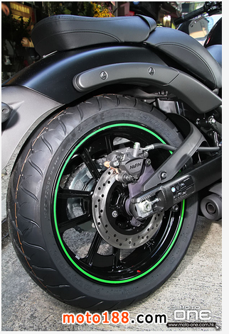 街車式的VULCAN S由于取自2015 VERSYS 650的車架,因此保留了臥式的尾避震,配備長尾擔及更大傾角的前避震,結果是更長的1,575mm軸距,是典型美式巡航車的設定,而有更佳重心的中置式 排氣管設定卻十分罕見,這結構是源自VERSYS 650的車架設計。舒適性方面,闊轪把、又闊又低矮座墊不用多說,三段式可調前后位置的腳踏方便不同身高騎士尋找舒適的座姿駕駛。