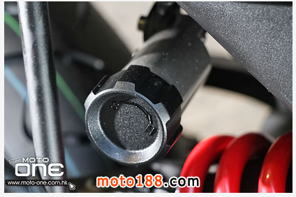 ●新的41mm前避震采用現(xiàn)時流行的左右獨立調(diào)校前叉,預載調(diào)校設(shè)於左前叉頂上,回彈調(diào)校則設(shè)於右前叉頂上。