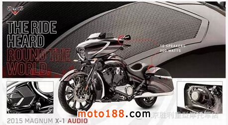 2015款勝利美國官網(wǎng)放出新款車型MAGNUM后,配套2015款勝利改裝配件同步發(fā)售,較2014款配件手冊相比新版改裝手冊涵蓋改裝類別更多,音響類改裝配件尤為突出。針對摩托車市場需求,勝利大熱車型MAGNUM推出"MAGNUM X-1",高規(guī)格音響系統(tǒng)升級,配備10枚揚聲器支持藍牙播放功能。