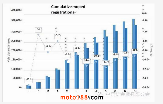輕便摩托車的注冊(cè)數(shù)持續(xù)走低。 2014年歐盟共注冊(cè)344,300輛輕便摩托車,而去年同期則為377,900輛,下降了8.9%。 各市場(chǎng)分別有不同程度的下降,英國1.3%, 西班牙3.7%, 法國7.4%, 意大利15.5%,德國為17.3%。