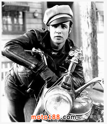 1953年馬龍白蘭度出演的《飛車黨》(The Wild One)更是火遍全球,電影中的馬龍白蘭度一襲皮夾克斜戴著帽子桀驁不馴地靠在一輛凱旋(Triumph)摩托上,慵懶而痞氣十足的神情配上“當代最傳奇的機械發明”-摩托車,一時風頭無倆。