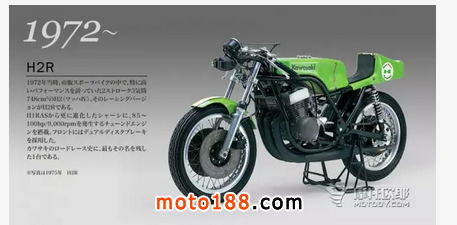 川崎的H2R是兩沖程,三缸,750排量跑車。最大馬力75匹,最快速度有能力達到190公里每小時,這也使得這輛車不太容易控制。而這款車也為后來的KR750的開發做了鋪墊。