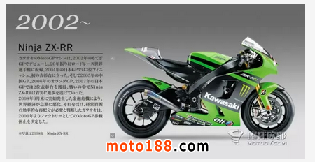 川崎為了登上GP舞臺,研制了ZX-RR賽車,首次亮相是在2002賽季,車手是柳川明。2004年, 中野真矢加入車隊,并登上了日本大獎賽季軍。2007年,蘭迪德普捏在日本拿下第二名。2008年賽季結束,ZX-RR隨著川崎車隊一同退出MotoGP舞臺。