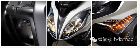 雙鷹眼大燈的下方加入LED行車燈,車尾除了使用LED之外,加入了燈條設計,是光陽近年繼RacingKing 180之外另一款用上燈條式尾燈的型號。Xciting 400iABS的儀表組擁有類比式轉速表,LCD顯示屏則顯示有車速、水箱溫度、油量、與電池電量的狀態等,豪華、直觀、信息量大,堪稱“汽車級”檔次。 作為一臺大綿羊,車迷們最關心的除了動力性能就是儲物空間的容積了。據廠方介紹,座鞍下可以存放一頂全盔。車頭前擋設有小型儲物箱,內里備有12V充電插 孔。鑰匙設在前擋的中央,同時也是鞍座的開關。雖然車座寬大,但仍能輕松彈起,這要歸功于前端的兩支油壓臂支桿。右方沒有雜物箱,但卻加入了駐車制動。操 作方法也十分簡單,向下壓就鎖上制動,向上抽起就解鎖,實用功能和使用便捷程度令人稱道。Xciting 400i ABS的外觀設計偏重歐洲風格,排氣管的設計融合于車身線條之中,隔熱罩采用了一體化的線條設計,十分大氣。