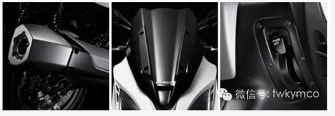 油箱加油口設于車架前端。儀表棄用三圓表設計,改用高反差指針及LCD組合。指針顯示轉速,LCD顯示車速、油量、時間、千米數、計程、故障碼等等,LCD 采用了反黑顯示,跟黑色為主調的儀表十分相稱。車架同樣是 Xciting 400iABS的特點之一,為改善車輛的操控性,這款車采用的高剛性輕量化車架比同級車款輕了15%,同時讓Xciting400iABS的過彎傾角達到 42°,使大綿羊也可以極致地展現運動性的一面。前輪配置高通過性的15寸輪輞,搭配雙浪制動花盤,后輪則配置能提高穩定性的14寸輪輞,制動采用放射式 四活塞卡鉗,絕對是跑車級的規格。Xciting 400i ABS的運轉很安靜,而且運轉時的震動也沒預期中大,所以駕駛時十分舒適。由于低扭十分充沛,發動機在3000r/min時已有很可觀的功率輸出,至 5000r/min左右已經可以在高速公路上輕松奔馳。