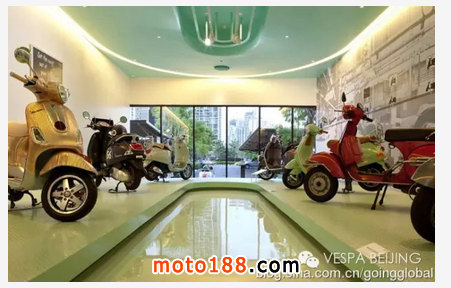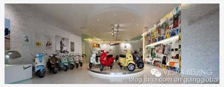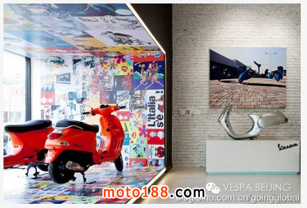 Vespa 踏板摩托已經(jīng)從一個(gè)機(jī)車(chē)品牌上升到了一個(gè)文化符號(hào),在都市創(chuàng)意群體的心目中占據(jù)著一個(gè)特殊的位置。為了迎合這種全球化的消費(fèi)文化訴求,Vespa在零售領(lǐng) 域積極擴(kuò)張,比如曼谷這家“Vespa 走廊”品牌店以及未來(lái)的許多專賣(mài)店。這家店由名為“超級(jí)機(jī)器”的機(jī)構(gòu)所設(shè)計(jì)與運(yùn)營(yíng),整家店內(nèi)標(biāo)志性的Vespa元素?zé)o處不在,從大量的迷你玩具模型展示到 主題墻上那些經(jīng)典的廣告海報(bào)。這基本上就是一場(chǎng)關(guān)于Vespa的慶典,強(qiáng)大的時(shí)尚潮流足以把一個(gè)新人車(chē)手帶入品牌文化的社區(qū)徜徉。