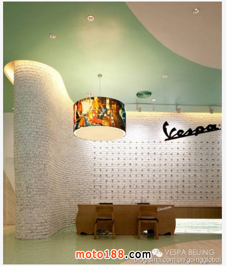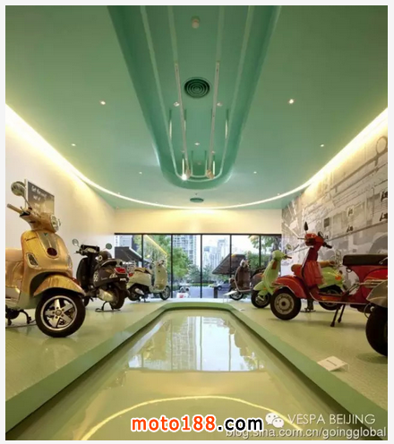 這家全新的Vespa品牌店有著象漫畫(huà)書(shū)一樣養(yǎng)眼的設(shè)計(jì)。它五光十色,活力十足,細(xì)節(jié)豐富。主展廳陳列了全系列的在產(chǎn)Vespa踏板摩托,還有大量的配件與 周邊商品。后面的房間類似于一個(gè)Vespa博物館,一個(gè)關(guān)于Vespa品牌歷史的畫(huà)廊,向每個(gè)客人分享它過(guò)去每一段美好的時(shí)光。毫無(wú)疑問(wèn),做為一家商店, 這是一個(gè)友好而特別的場(chǎng)所,是這個(gè)品牌又一次成功的沉淀。
