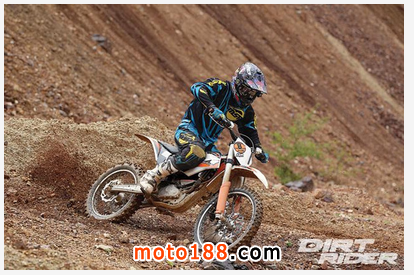 Freeride E的永磁同步電動機有著三種模式,模式一動力輸出曲線較平緩,使得車輛很易操控。我更喜歡模式二,模式二動力輸出最大,使得你在賽道上能夠最猛烈地加速。模式三介于模式一和模式二之間。 Freeride E只有一個檔位,就像遙控玩具一樣,如果你大力給油,他會在光滑路面打滑,高達30匹的馬力輸出使得后輪會產生擺動(國產“神機”NC250大概26匹)。輕微的拉動制動桿你就可以控制它傳輸到地面的動力,使得車子可控。即使在最激進的模式二你也可以輕易在碎石區和粗糙路面控制你的馬力。我從未想過我會這樣形容一款電動摩托車,但是Freeride E卻明顯可以適用于耐力賽道。從中段轉速到全油門極限轉速時,輸出一直在增加。動力不是戛然而止,加速是慢慢地減弱的。Freeride E 還有一個很酷的特性是其輸出和油門相比其他電動摩托車幾乎沒有延遲。電機轉速跟上后輪時,有一種后輪空轉的感覺。這個特征使得Freeride E比其他電動摩托車更像越野摩托。