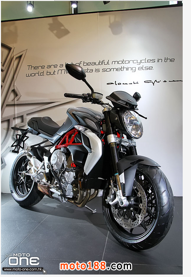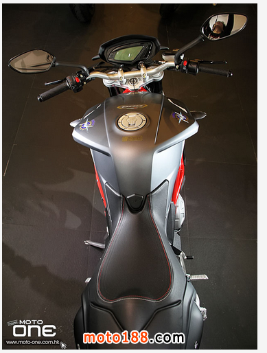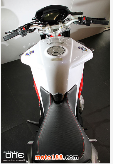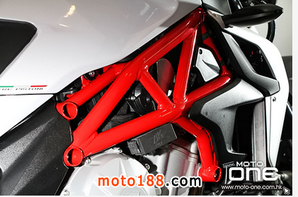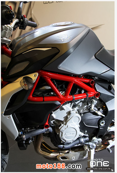 其次,2015 MV Agusta BRUTALE 800 ABS 深灰與白色閃粉底的新色抵港(紅色快將抵港),三色的車身鋼管車架均改用搶眼的紅色,并新增了油缸與座位間一片保護(hù)膠。至於車身設(shè)計、引擎及裝備均與2014款相同。
