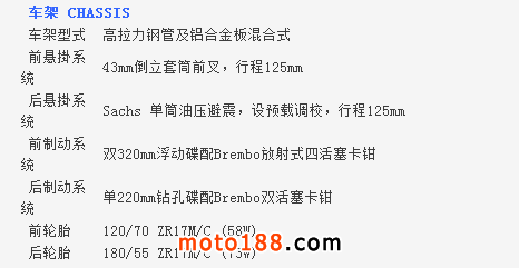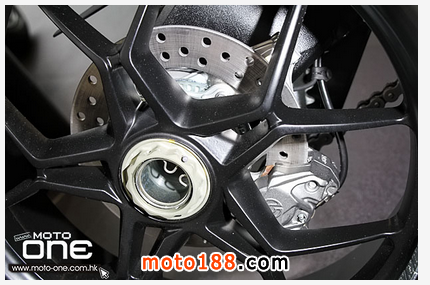 ●前掣動是雙320mm浮動碟配Brembo放射式四活塞卡鉗,一對擁有全調(diào)校的MARZOCCHI 43mm倒立前叉。