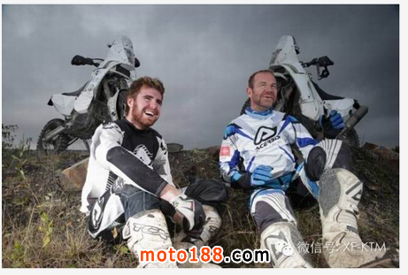 “我跟爸爸一起經歷了很多,在2011年之后我決定我真的要去達喀爾。我4年竭盡全力連續不斷的參加英國摩托車耐力錦標賽,參加各種競賽俱樂部,犬兔越野追逐等等。我沒有參加太多的的越野賽,因為我們老是在森林迷路。我之前報了幾次達喀爾賽,一直被美國海洋學會拒絕一直到今年。”當被問誰比較快,是年輕的家伙還是有經驗的父親。盧埃林大聲的回答:“我,毫不夸張的話,他現在47歲了要是比我快的話我會很惱火。所以如果他比我快我一定會弄一些岔子。”