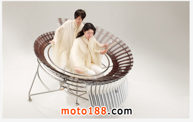 這架木琴的設計靈感來自風神(Fujin)。為表演者設兩個座位讓人想起兩座摩托車,而不斷旋轉的琴鍵似乎帶起了風和摩托車馳騁時的快感。誰有玩過這么拉風的木琴?#這兩個白衣飄飄清新脫俗的好像好厲害#