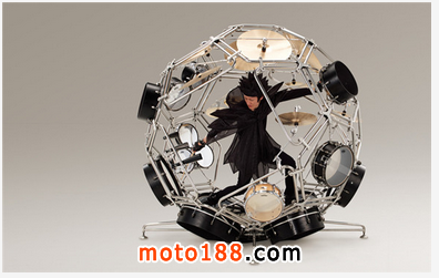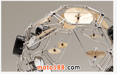 這套群鼓靈感來自雷神(Raijin),看著就很有氣勢。像地球儀一樣的形狀能讓表演者在里頭隨心所欲表達自己,就像一場場放浪形骸的風暴。誰說鼓手只能乖乖坐著的?