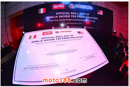 核心提示: Aprlia Shiver 750 CKD版本在馬來西亞吉隆坡皇家朱蘭酒店發布,這是Aprilia品牌在亞洲最具里程碑意義的事件。馬來西亞工業和