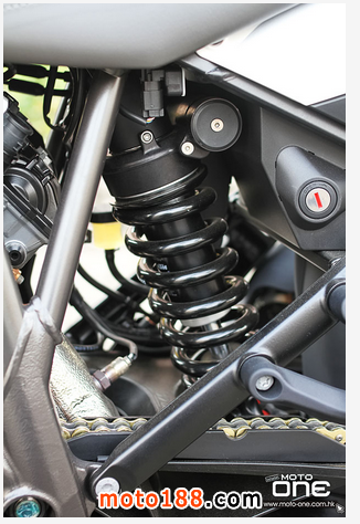 另一項類似四輪的裝備是油缸兩則的貓頭鷹射燈,車身傾角感應器根據入彎角度,自動調校 彎道的照明角度,可增加騎士在夜間轉彎時的行車視野。另外廠方在車身偷輕方面也下了很大功夫,官方數字隨時行車重量(注入了機油、散熱水箱水及迫力油等 等)是229kg,載滿30升汽油后的重量是249kg,以馬力/重量比例來說是同級之冠。官方數字還顯示30升汽油可行駛最少500km路程,但沒有公 佈行駛方法。