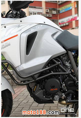 說回KTM 1290 SUPER ADVENTURE,可以說是集1190 ADVENTURE及1290 SUPER DUKE R精華提煉出來的超級冒險王。例如保留了1190 ADVENTURE的車身線條,但加入了新設計的大包圍,並且沿用相同的車架、尾擔及改良的排氣管等等,但引擎卻移植自充滿野獸味的1290 SUPER DUKE R的V2引擎,排氣量是1,301cc,比1190 ADVENTURE的1,195cc增加了106cc,與此同時馬力由148hp增至160hp,數字上遠超同級冒險車。