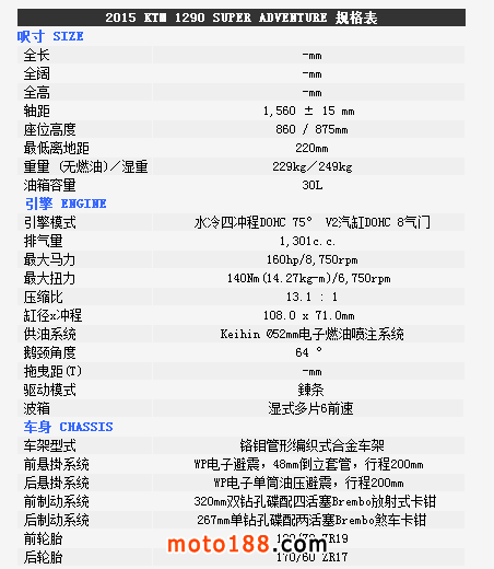 ●KTM 1290 SUPER ADVENTURE的V2引擎移植自KTM 1290 SUPERDUKE R,馬力由180hp下調至160hp,并使用新設計的引擎盤頂、曲軸及飛輪,加強線性馬力輸出。