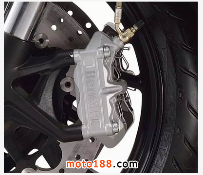 前液壓剎車手柄,采用國外高檔摩托車前制動上泵,專門匹配設計,更人性化的設計,前制動手柄有四個檔位調節張開寬度,適應不同大小手型,更安全可靠。前制動卡鉗采用和國外高檔大排量摩托車一樣的對置四缸設計,只型體稍小,專門匹配設計,制動更平穩,剎車片磨損過中會自動跟進,減少了手動調節間隙的需要。