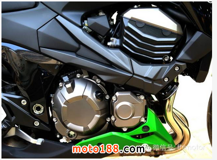 Z800擁有一顆806cc排量的直列四缸引擎,這顆引擎源自與Z750,經過升級的引擎,最大馬力達到113hp,最大扭力83Nm,使得Z800無論跑街還是山道,都能得心應手,加之直列四缸引擎平順的優點,動力隨叫隨到!