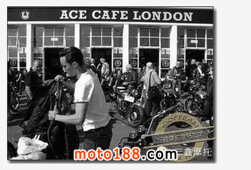 這間歷史悠久、位于倫敦的咖啡館"Ace Cafe London"是非常著名的咖啡賽車朝圣地。從1938年營運至1969年歇業,1997年再次重新開張。Ace Cafe London 一直致力于提倡咖啡賽車。而象徵店徽的"黑桃",也漸漸變成咖啡騎士們的精神表彰,直到今日。
