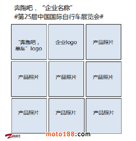 尋找XX企業(yè)的展位,拍攝8張該展位的圖片(其中一張為門頭),將8張照片和“奔跑吧,單車”活動的背景板照片一起,上傳微信朋友圈(如下圖所示),憑借微信朋友圈內(nèi)容、一張與企業(yè)展位的合影,到創(chuàng)新示范展獲取抽獎機(jī)會。