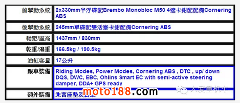而最重大改變我認為是電子方面,以前有的如DTC防打滑(Ducati Traction control)和EBC引擎牽引(Engine Brake Control)固然在,新的東西就有了DQS Up/down電子轉波 (Ducati Quick Shift),DWC防起頭(Ducati Wheelie Control),和Cornering ABS彎道防鎖死。